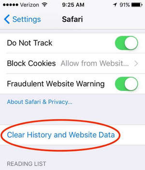 Cabeça sobre a Configurações> Safarie toque em Limpar histórico e site Dados para esvaziar o cache do Safari como você fez com o seu computador e mantê-lo funcionando sem problemas.