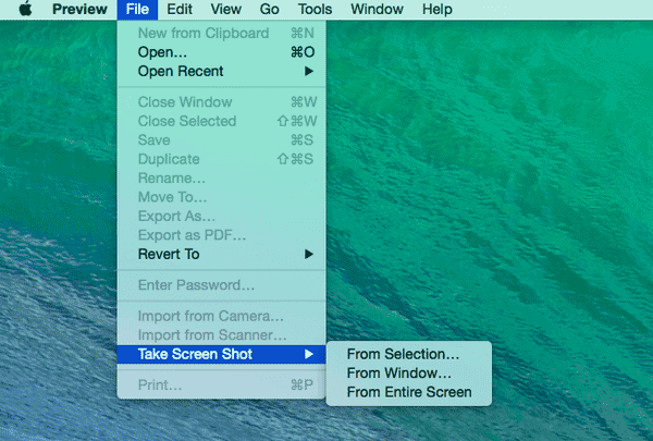 Na janela de visualização, clique em "Arquivo" > "Tirar captura de tela" para começar a imprimir a tela. Existem três opções, "Da seleção", "Da janela" e "Da tela inteira". Você pode usar essas funções para imprimir a tela.
