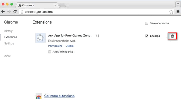 Passo 3Clique na ícone de lata de lixo para removê-lo do Chrome.