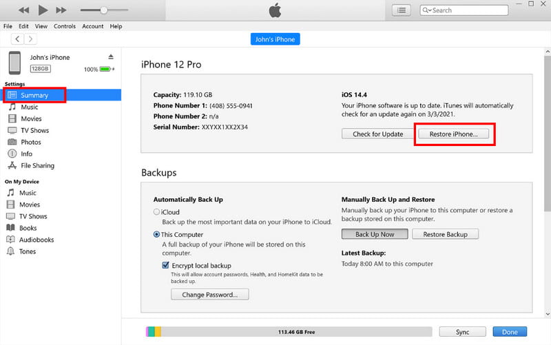 Se você esquecer a senha do seu ID Apple, ainda é possível apagar os dados do seu iPhone. O iTunes não exige senha, mas alguns usuários acharam que o aplicativo era lento e não conseguia detectar dispositivos iOS. Também depende se você sincronizou o iPhone com o iTunes. Caso contrário, você usará outros métodos. Ainda assim, é uma excelente escolha para experimentar. Vamos ver como usar o iTunes para limpar um iPhone sem senha.
