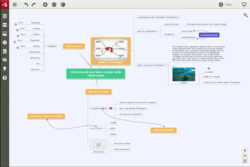 Mindomo é um criador de mapas conceituais popular entre os especialistas. Ele permite que você delineie ideias mentalmente em uma interface visualmente envolvente, além de colaborar com as equipes. O recurso integrado de trabalho em equipe permite que seus parceiros se organizem facilmente.