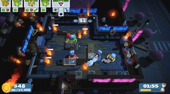 Assim como o nome indica, você precisa cozinhar pratos no tempo limitado em Overcooked 2. Você pode cozinhar vários tipos de comida com até 4 jogadores ao mesmo tempo, incluindo pizzas, saladas, hambúrgueres e muito mais. Se você quiser se divertir com os amigos, pode executar o multiplayer online, assim como outros melhores jogos para jogar no Mac. Caso contrário, você pode usar o multiplayer local.