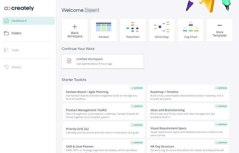 O último criador de fluxograma é o Creately. É uma ferramenta online e você precisa fazer login antes de usá-la. É um pouco problemático, mas você pode sincronizar todos os seus registros de criação de fluxograma sem a limitação do dispositivo. Obviamente, como criador de fluxograma, o Creately possui diferentes tipos de modelos de fluxograma e alguns símbolos básicos de fluxograma. E você pode selecionar formas para setas em seus fluxogramas. Além disso, Creately fornece recursos para você fazer outros tipos de diagramas. E este criador de fluxogramas on-line suporta a adição de ícones fofos e engraçados aos seus fluxogramas.