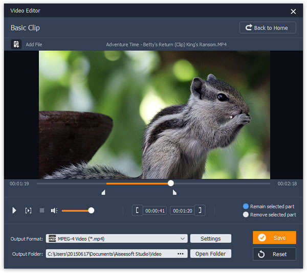 Se você precisa de um editor de vídeo fácil de usar que suporte a edição de vídeo quadro a quadro, o Aiseesoft Video Editor é a melhor escolha. Seus principais recursos incluem: