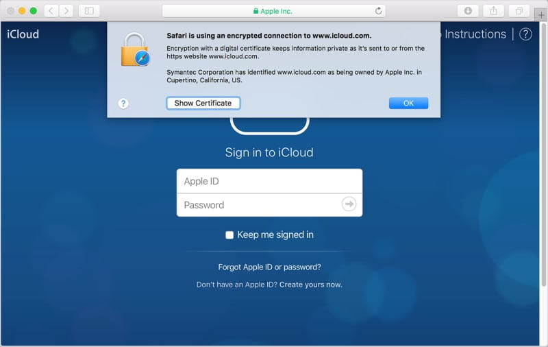 Acesse https://www.icloud.com/ no Mac ou em outro dispositivo iOS.