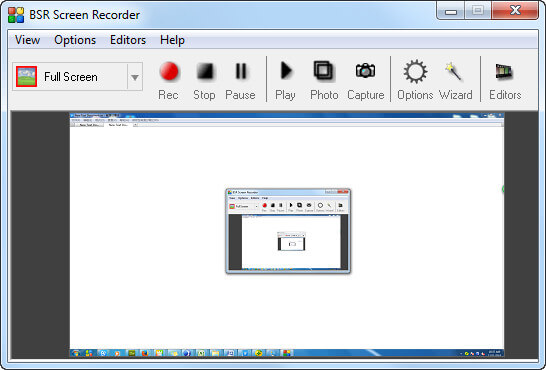 Prós: BSR Screen Recorder pode capturar vídeos e gravar tudo o que você vê no seu computador. Personaliza a área de captura quando você está gravando seus vídeos. Além disso, este software suporta tirar fotos durante a gravação. Esta função é útil especialmente para jogadores que desejam salvar as imagens animadas na gravação de vídeo.