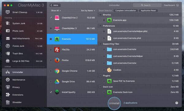 ◆ Desinstalador: limpe aplicativos indesejados do Mac e seus arquivos e pastas associados.