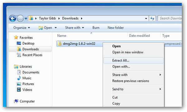 Passo 1Primeiro, você precisa baixar o conversor DMG para ISO no seu computador. Depois de baixar o arquivo, localize e clique com o botão direito sobre ele. Em seguida, escolha "Extrair tudo" na janela pop-up.