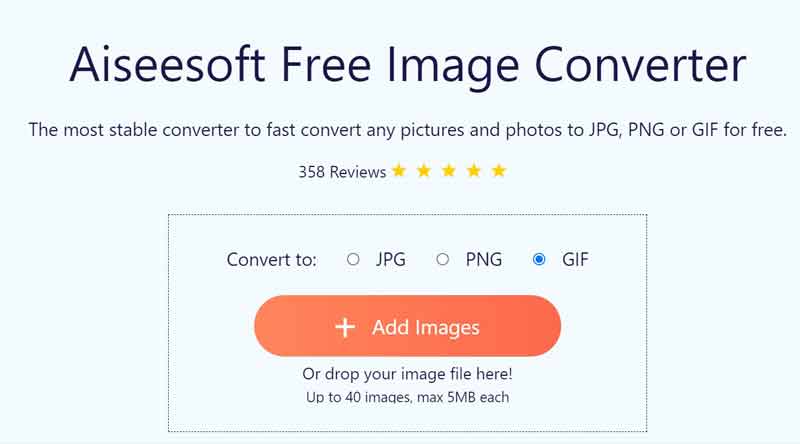 Às vezes, você precisa de um conversor de GIF portátil para alternar entre os formatos de imagem. Conversor de Imagem Gratuito Aiseesoft é uma boa opção tanto para iniciantes quanto para usuários avançados.