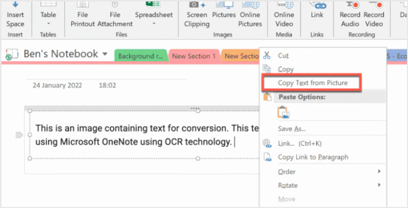 O OneNote da Microsoft oferece suporte ao reconhecimento óptico de caracteres e permite converter imagens em texto. Ele oferece uma maneira conveniente de copiar texto de um arquivo de imagem e colá-lo em suas anotações. Você pode usá-lo no Windows PC e no Mac para transformar imagens em texto.